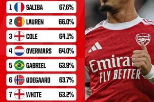 体育资讯9月30日讯 萨利巴与阿森纳续约在即,OPTA也盘点了阿森纳队史球员在英超胜率榜(至少100次出场),其中萨利巴居首,具体如下: