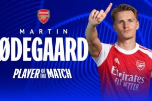 体育资讯10月2日讯 欧冠联赛阶段第2轮,阿森纳2-0奥林匹亚科斯。厄德高首发出战,赛后当选为全场最佳球员。