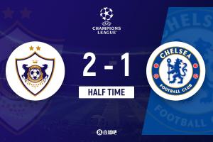 半场-切尔西暂1-2卡拉巴赫 埃斯特旺破门哈托失误致丢球+送点