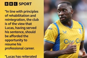 “根据重返社会原则,俱乐部认为卢卡斯在服完刑期后,应获得恢复其职业生涯的机会。”