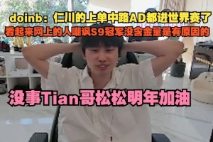 大B:仁川的上单中路AD都进世界赛了,看起来网上的人嘲讽S9冠军没含金量是有原因的,没事Tian哥松松明年加油。
