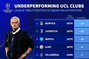 德转列欧冠表现不佳球队榜:本菲卡、尤文最差,切尔西、皇马在列