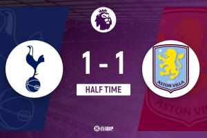 体育资讯10月19日讯 北京时间21:00,英超第8轮热刺vs阿斯顿维拉,比赛在新托特纳姆热刺球场打响!上半场,本坦库尔破门;库杜斯进球被吹越位!罗杰斯半场前世界波扳平!半场结束,热刺暂时1-1维拉。