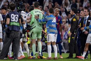 体育资讯10月27日讯 西甲第10轮,皇马主场2-1击败巴萨,赛后亚马尔与卡瓦哈尔、维尼修斯等皇马球员发生冲突。