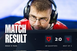 易边再战,手枪局xertion见面双杀,MOUZ融化FaZe后,jcobbb手枪四杀翻盘,但MOUZ次回合也上演手枪翻盘,torzsi一把Tec-9拿双杀,MOUZ来到第11分。随后MOUZ打爆A点拿到赛点,寒王三杀帮助FaZe追回一个赛点无济于事,MOUZ摧枯拉朽13-5拿下图一。