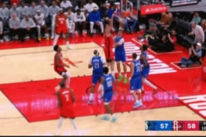 想啥呢!奎克利拿到篮板跳起没出球走步违例
