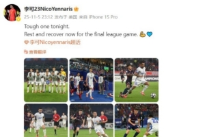 李可社媒分享比赛照片:现在要好好休息恢复,备战最后一场联赛。