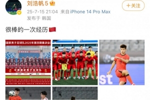 在和中国香港队比赛结束后,刘浩帆更新社媒,晒出球队全家福和比赛照等,并配文写道:“很棒的一次经历。”