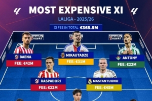 体育资讯9月4日讯 德国转会市场列出了西甲今夏最贵引援阵容,安东尼、马斯坦托诺、赫伊森、卡雷拉斯在列。
