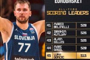 本场比赛过后,东契奇欧锦赛总得分来到515分,暂列历史第45位,排在他前面的是马克-加索尔。
