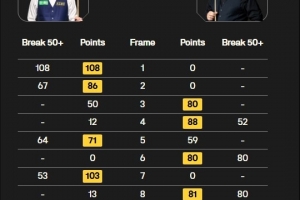 斯诺克国锦赛16进8轮次,扎克-舒尔第6-3战胜罗伯逊晋级八强