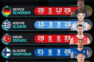 今天,欧锦赛官推晒出了半决赛上的球员高光表现。