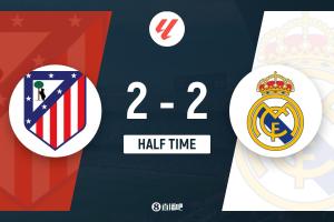 体育资讯9月27日讯 北京时间9月27日22:15,西甲第7轮马竞迎战皇马的比赛在大都会球场进行,上半场索尔洛特开场失单刀,小西蒙尼助攻勒诺尔芒头球首开记录,居勒尔助攻姆巴佩单刀推射扳平比分,随后维尼修斯助攻居勒尔抽射反超比分,阿尔瓦雷斯远射中柱,补时索尔洛特头球扳平比分,半场结束,皇马2-2马竞。