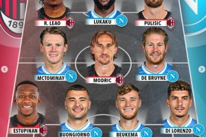 前锋:莱奥(米兰)、卢卡库(那不勒斯)、普利西奇(米兰)