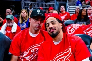 步行者官推晒出了哈利伯顿与麦康纳场边观战的照片。